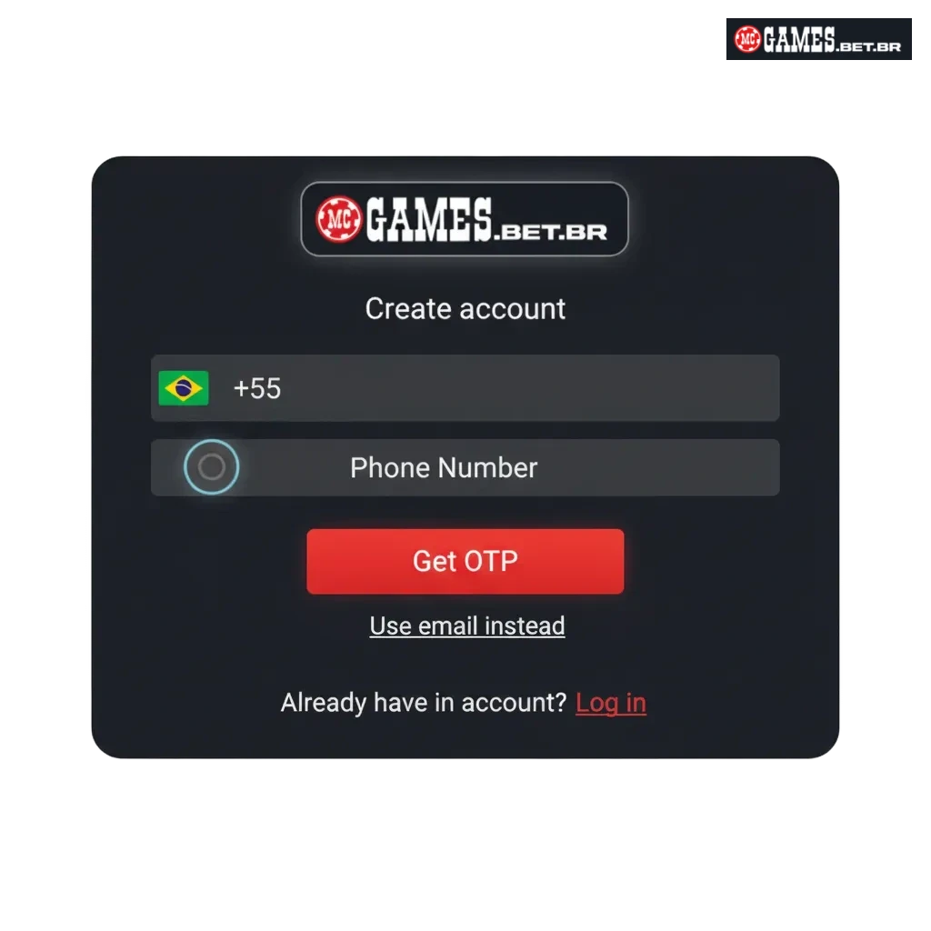 Cadastro pelo App da MC Games